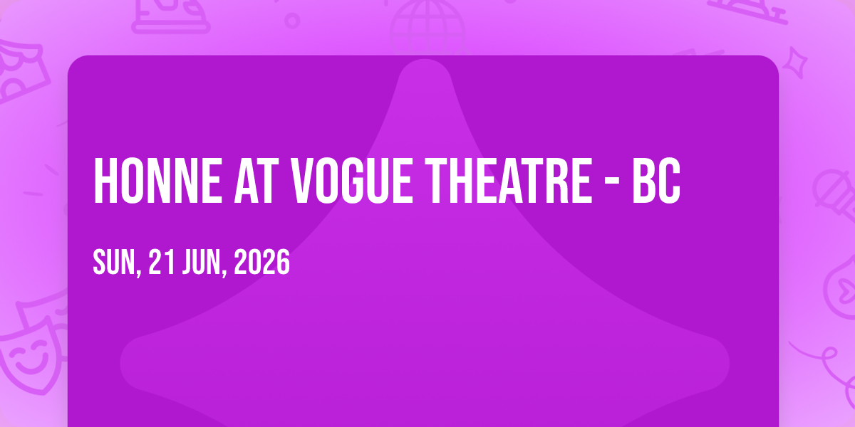 ✨ Embark on an extraordinary journey at HONNE at Vogue Theatre - BC, where every moment promises to be unforgettable! 🌟 Imagine of transforming Vogue Theatre - BC in the heart of Vancouver, BC into a realm of endless possibilities. 📅 Join us on June 21st, 2026 at 08:00 PM for an experience that will challenge your imagination and exceed your expectations. 🎯 This carefully curated event combines the finest elements of entertainment, innovation, and community spirit. Whether you're an adventure seeker, culture enthusiast, or someone looking for unique experiences, this event offers something special for everyone. 🎊 Don't miss this chance to be part of something extraordinary!