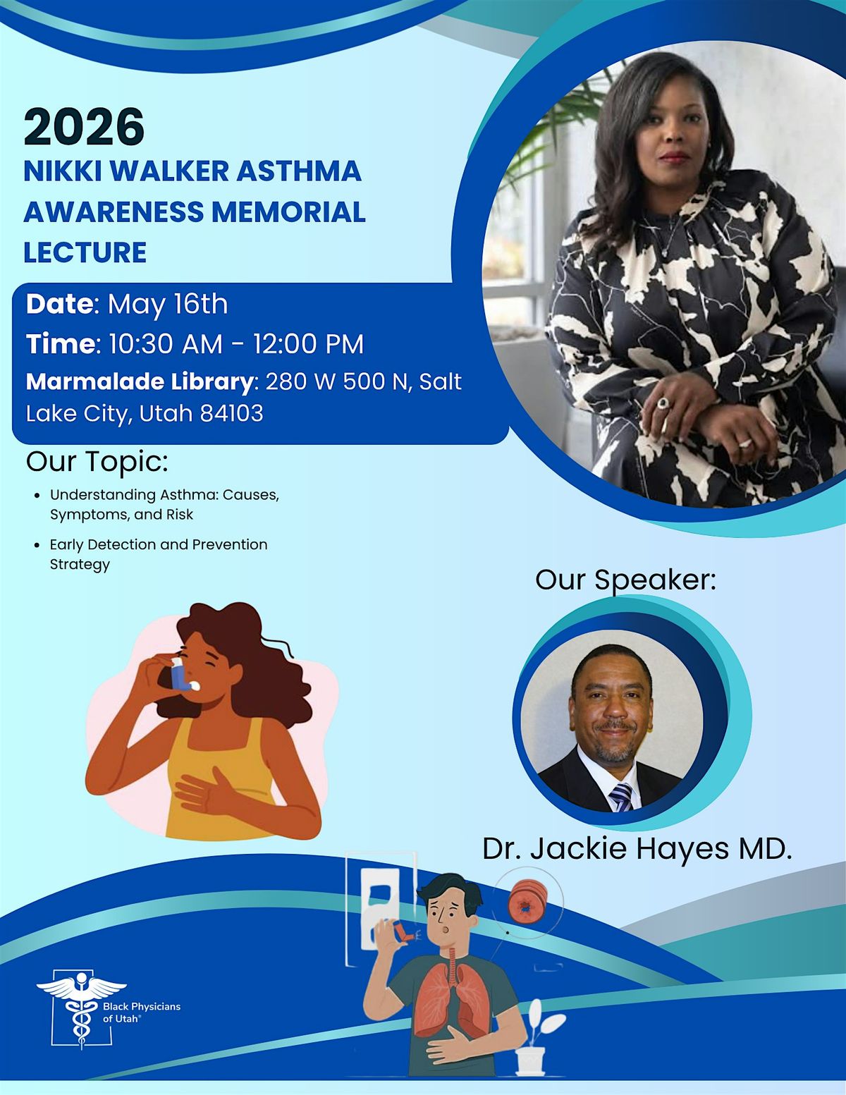 The Nikki Walker Asthma Memorial Lecture is a dedicated educational event focused on honoring the life of Nikki Walker by increasing awareness, advancing knowledge, and understanding the impact of asthma on Black and marginalized communities. This event will have a renowned Pulmonologist and staunch advocate for managing Asthma in the Black community, Dr. Jackie Hayes, and community members living with Asthma to discuss their experiences, prevention strategies, and equitable access to treatment. We do this in honor of Nikki Walker, so there will not be another loss to our community from this respiratory disease.