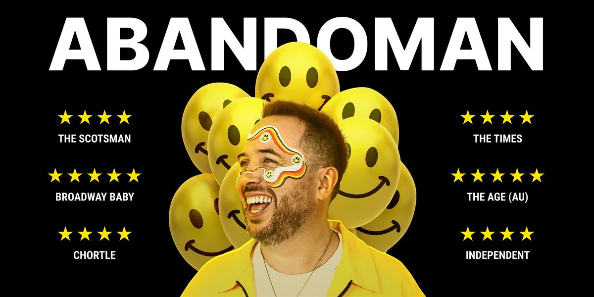 Abandoman has previously won Hackney Empire New Act of the Year, Best Comedy Newcomer at the Adelaide Fringe, headlined comedy stages at Glastonbury, Latitude, Reading and Leeds, performed in the house band for Alan Carr's Happy Hour on Channel 4 alongside Craig David, played the part of Dictionary Corner in 8 Out of 10 Cats Does Countdown, as well as supported and toured with pop behemoth Ed Sheeran.