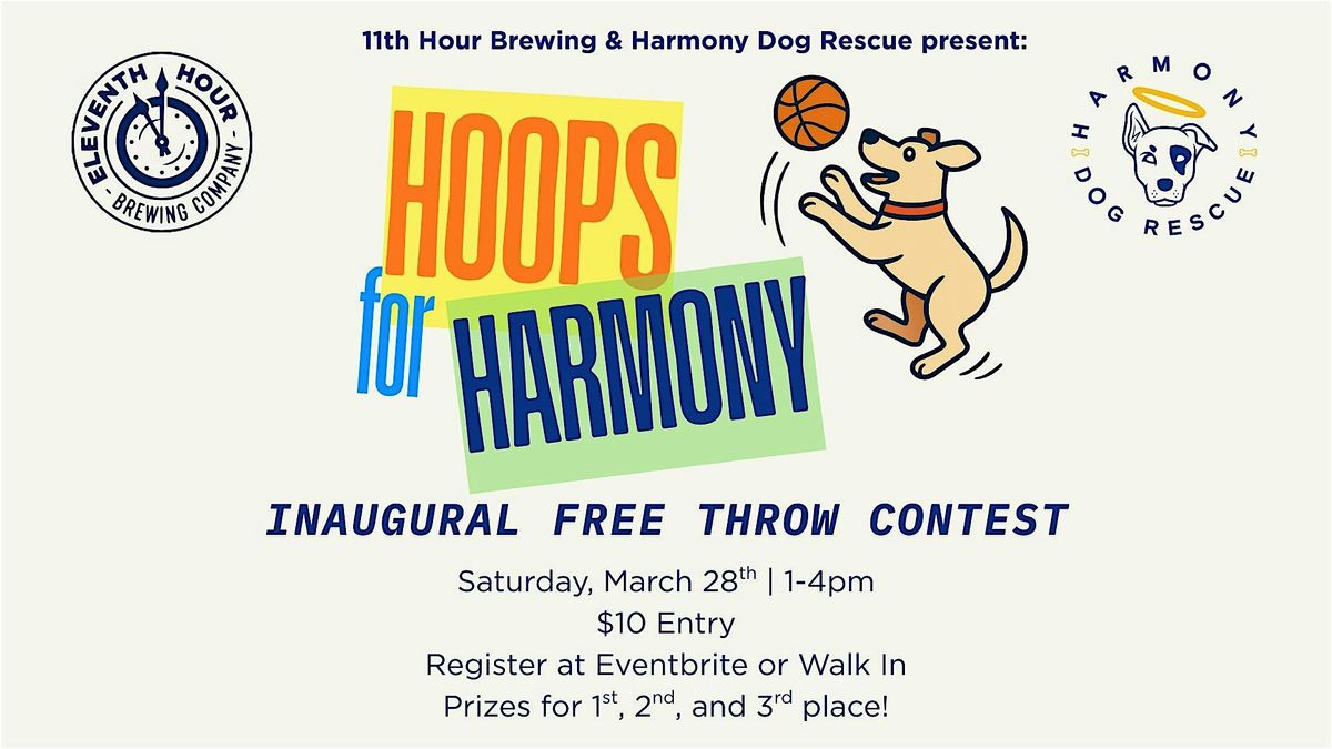 Join us on Saturday, March 28th from 1–4pm for the first ever Hoops for Harmony Free Throw Contest at 11th Hour Brewing! Benefiting Harmony Dog Rescue, this all-ages event is a fun afternoon of friendly competition, delicious beer, and food from The Boonseek all while supporting a great cause.