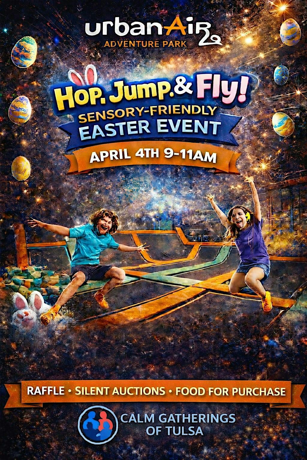 Join Calm Gatherings of Tulsa for a fun, relaxed, and sensory-friendly Easter celebration at Urban Air Adventure Park! This in-person event is designed for families who want a welcoming environment with friendly vibes, plenty of space, and a community that “gets it.” Come ready to hop, jump, and fly into the season together!