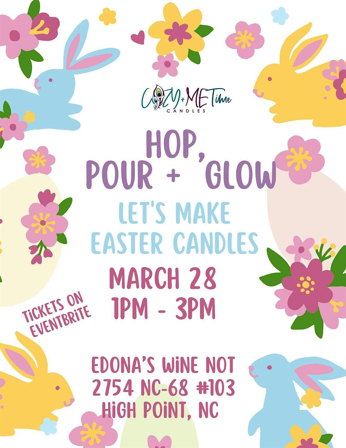 During this workshop your will learn what's the best ingredients to use for candle making. Lets make Easter gifts while enjoying some WINE!