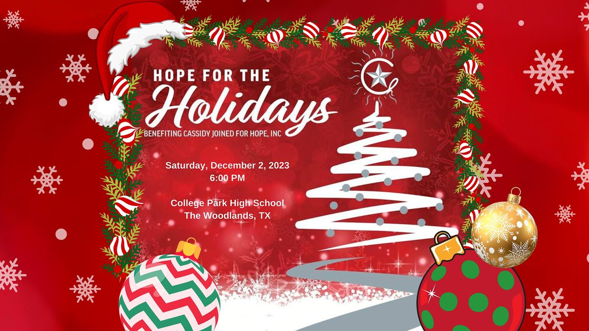 Come join us at The Woodlands College Park High School for an incredible event filled with joy and excitement, as we celebrate the holiday season together! This in-person event will be a memorable experience for everyone. Get ready to enjoy festive music and incredible performances from students representing 17 different local schools. Spread the holiday cheer with your loved ones and create lasting memories while spreading HOPE during the holiday season. We can't wait to see you there!
