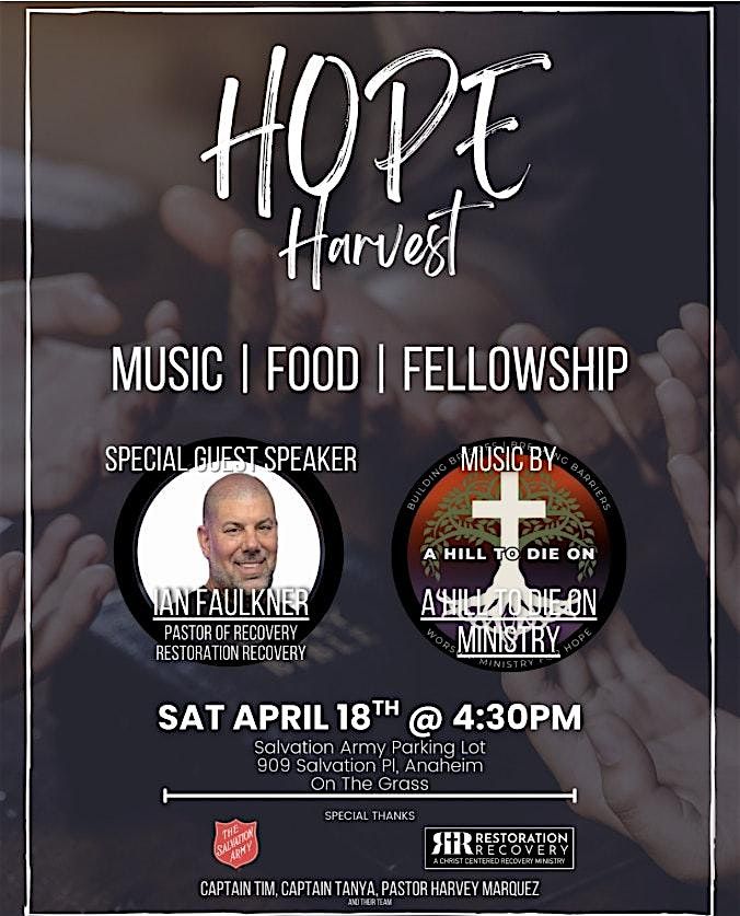 Join us for a night of music, food, and fellowship at The Salvation Army Anaheim Hope Harvest is a time to come together as a community, hear stories of changed lives, and share encouragement.