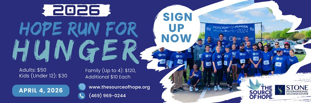 Join us for the 2026 Hope Run for Hunger 5K in Plano, Texas! This community event supports the mission of The Source of Hope and brings families together for a day of running, activities, and giving back.