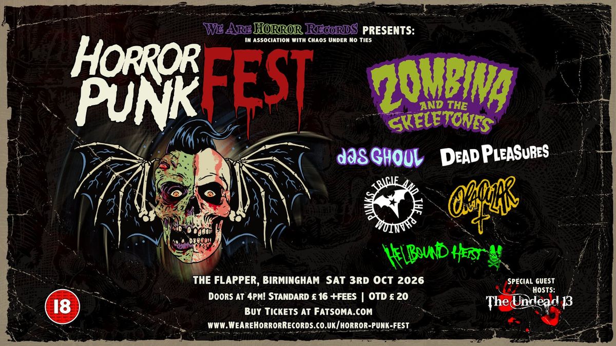 THIS IS FOR THE EARLY BIRD TICKETS.Venue: THE FLAPPER, BirminghamDate: Saturday, OCTOBER 3RD, 2026Lineup:Zombina and The Skeletones (Liverpool, UK) - “The band under your bed” return to Birmingham with their cult horror anthems — Out of the crypt… and into your heart!