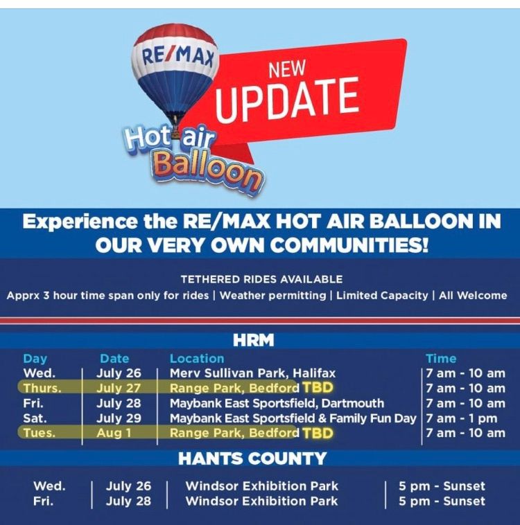 The balloon will be at different locations around #Halifax, #Dartmouth and #Windsor throughout the week, offering tethered rides.