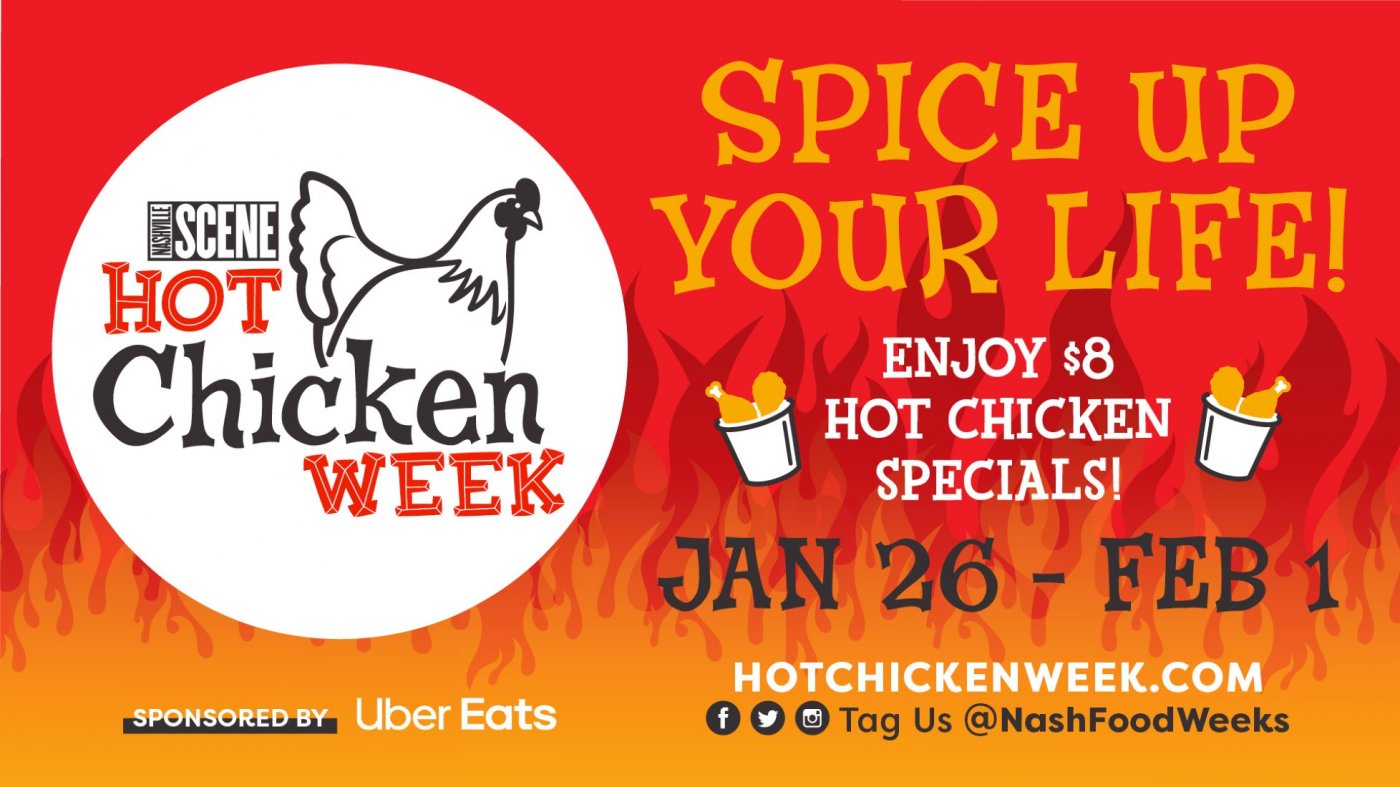 Heat things up this winter with the Scene's annual Hot Chicken Week — January 26-February 1. For one week only, 30+ of the city's top restaurants will offer $8 hot chicken specials in hopes of winning your vote. Download the Hot Chicken Week app or visit hotchickenweek.com to view participating restaurants, browse specials and learn more. Follow @nashfoodweeks on Instagram to stay up-to-date on all things Hot Chicken Week!