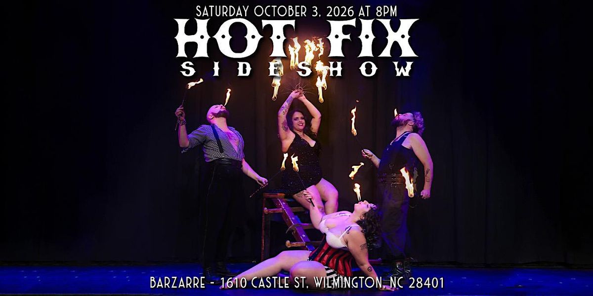 Coney Island’s own Hot Fix Sideshow is barreling their way to Wilmington for one night of sword swallowing, fire breathing, shenanigans at Barzarre! Brace yourself for sinister silliness & dionysian delights.