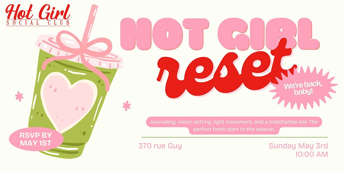 Join us on Sunday May 3rd, 2026 at 10:00 AM for Hot Girl Reset — a curated wellness experience designed to help you slow down, realign, and step into your next chapter surrounded by an incredible community of women.