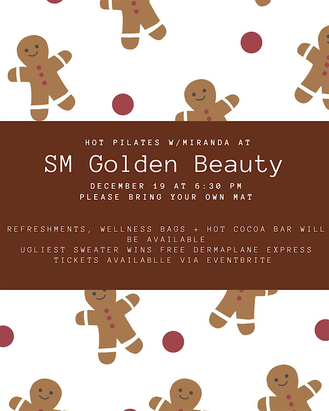 Enjoy a hot pilates flow followed by a hot cocoa bar, refreshments and wellness bags for everyone. Ugliest sweater will win free facial!About this Event