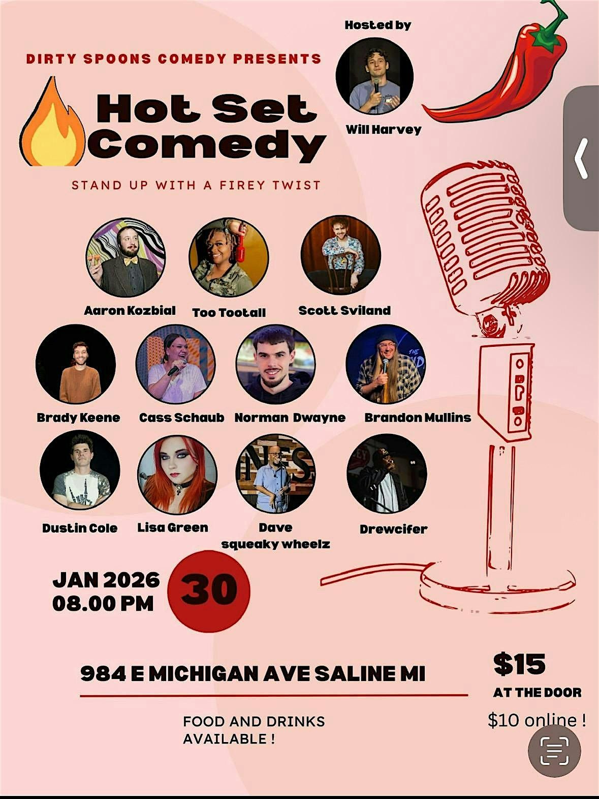 12 + comedians will east a super spicy pepper before they attempt to do 5 minutes of stand up comedy !