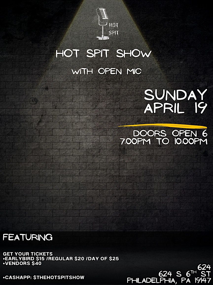 The hot spit show hits the live stage.The show opens up with an open mic, rooted in spoken word poetry but other art forms are welcomed. Then the featured artist pours their heart on stage. Throughout the night we'll have two hot spit challengers as well. if you are unfamiliar with the hot spit challenge, Artist will eat a hot chip and then perform for the crowd while their mouth is on fire. if you’re not scared you can sign up to take the challenge too. It’s your chance to prove that what you spit is fire. this is a show that you won’t want to miss