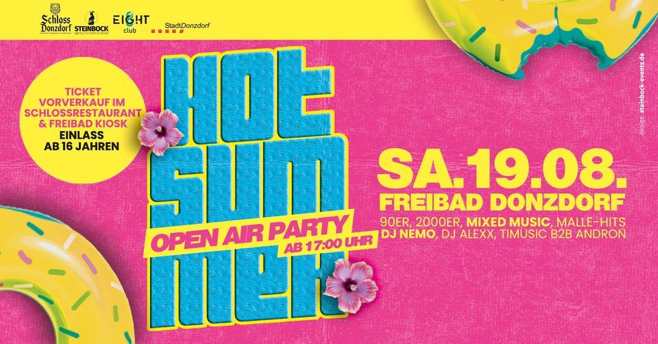It’s gonna be a hot summer, hot hot summer!Hochsommer, kühle Drinks & coole Beats direkt am Wasser. Am Samstag 19. August verwandeln wir Teile des Donzdorfer Freibads in eine Open Air Party-Oase.