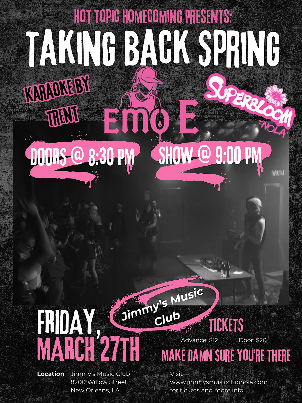 A night of your favorite emo anthems! Live performances by Superbloom + EMO E - And all the EMO Karaoke Hosted by Trent Rodrigue