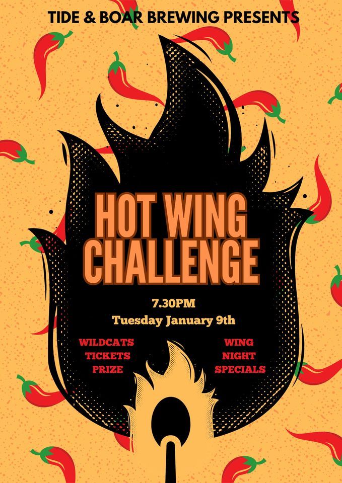 Our Hot Wing Challenge is back and starting the new year off with style! Come down to Tide and Boar Brewing on Tuesday, January 9th at 7.30pm for another round of culinary cruelty. Nine wings, three sauces, and a race to the finish for a winner-takes-all prize!! See you there!