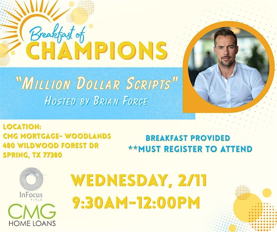 Join us Wednesday, February 11th, at United Real Estate Houston for Breakfast of Champions, featuring Brian Force — a live, hands-on workshop designed to help real estate agents convert more prospects into appointments using proven, repeatable scripts.