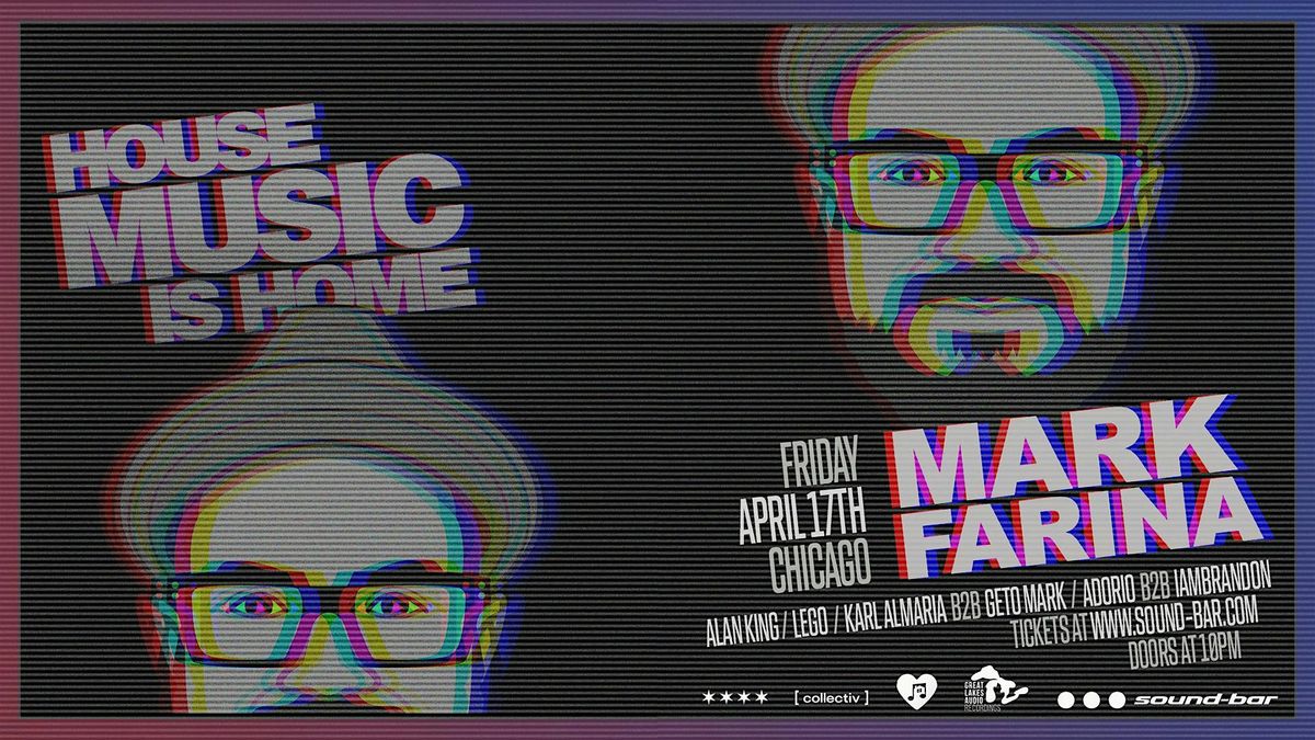 House Music is Home. A gigantic DJ Line up w Mark Farina, Alan King, Lego, Karl Almaria B2B Geto Mark, Adorio B2B IAMBRANDON DJing at Soundbar. Free w RSVP.