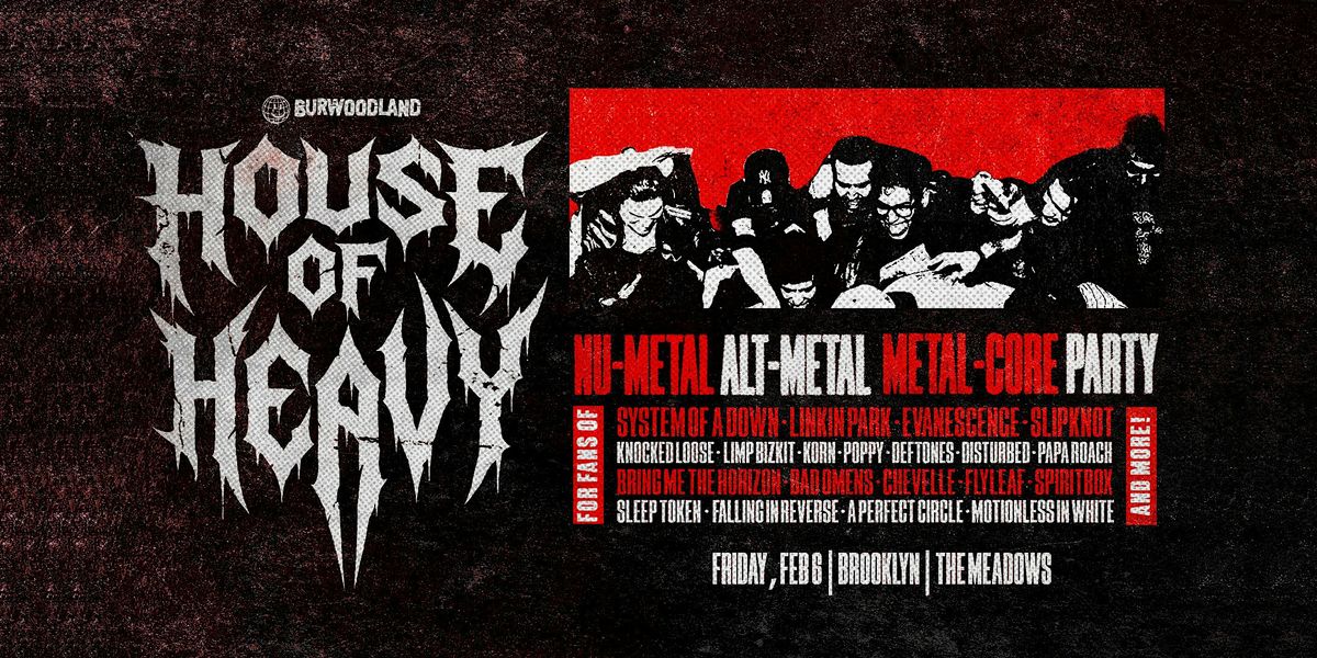 House of Heavy is hitting the stage at The Meadows on Friday, February 6. We are a night built for the fans who crave the pit, the riffs, the breakdowns, and the chaos, but are tired of waiting for the next tour to hit their city. We’re bringing the energy of a packed metal show to you all year long: the nu-metal nostalgia, the alt-metal anthems, the metal-core breakdowns. Come scream along, throw down with friends, and lose yourself in the heaviest night out your city has to offer.