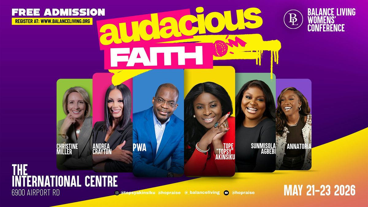 Under the theme Audacious Faith — rooted in Hebrews 10:35 (TPT) — BL'26 is calling every woman who is ready to stop playing small, own her voice, and step into open heavens over her life. Whether you've been carrying the weight of the world or standing at the edge of your breakthrough, this is your moment.