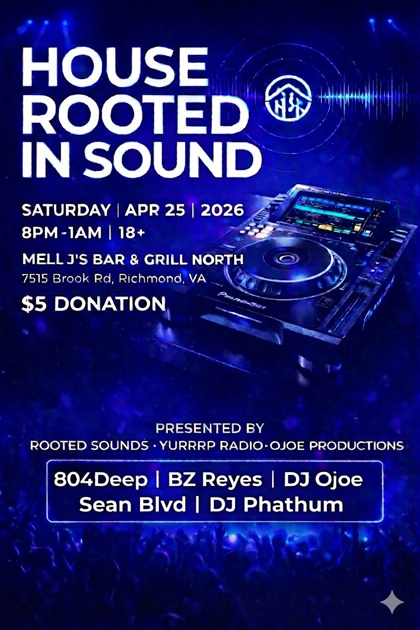 Get ready to dive into an unforgettable in-person experience with House Rooted In Sound! This event is all about good vibes, sick beats, and a community that loves to move together. Whether you're a die-hard house fan or just curious, come join us for a night full of rhythms that hit deep and sounds that make you groove. Don't miss out on the energy – let's get rooted in sound!