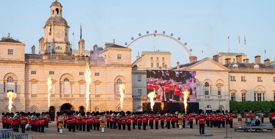Set on the historic Horse Guards Parade in the beautiful surroundings of St James’s Park the Military Musical Spectacular recognises the power of music as a universal language together with a unique celebration of iconic Rock Artists from across the land accompanied by a stunning pyrotechnic finale with a moment of reflection to commemorate the 80th anniversary of the D-Day landings.