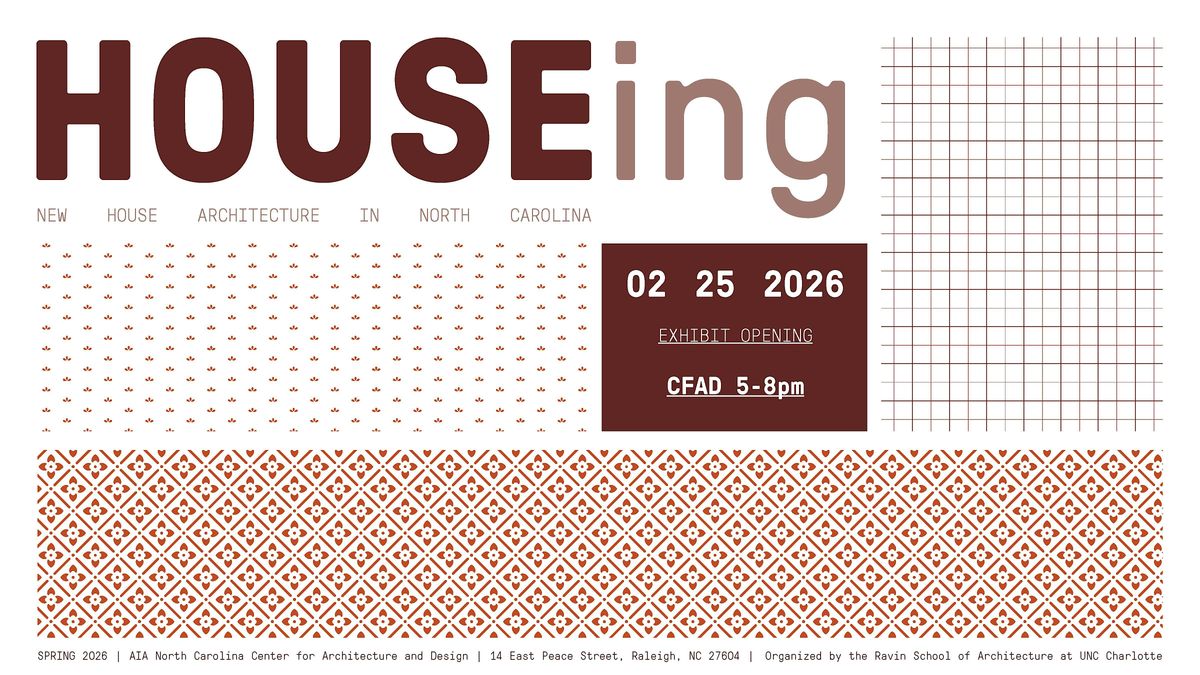 This exhibit collects new approaches to HOUSE architecture for sites across North Carolina from leading architectural practices. The exhibit is organized and sponsored by the Ravin School of Architecture at UNC Charlotte.