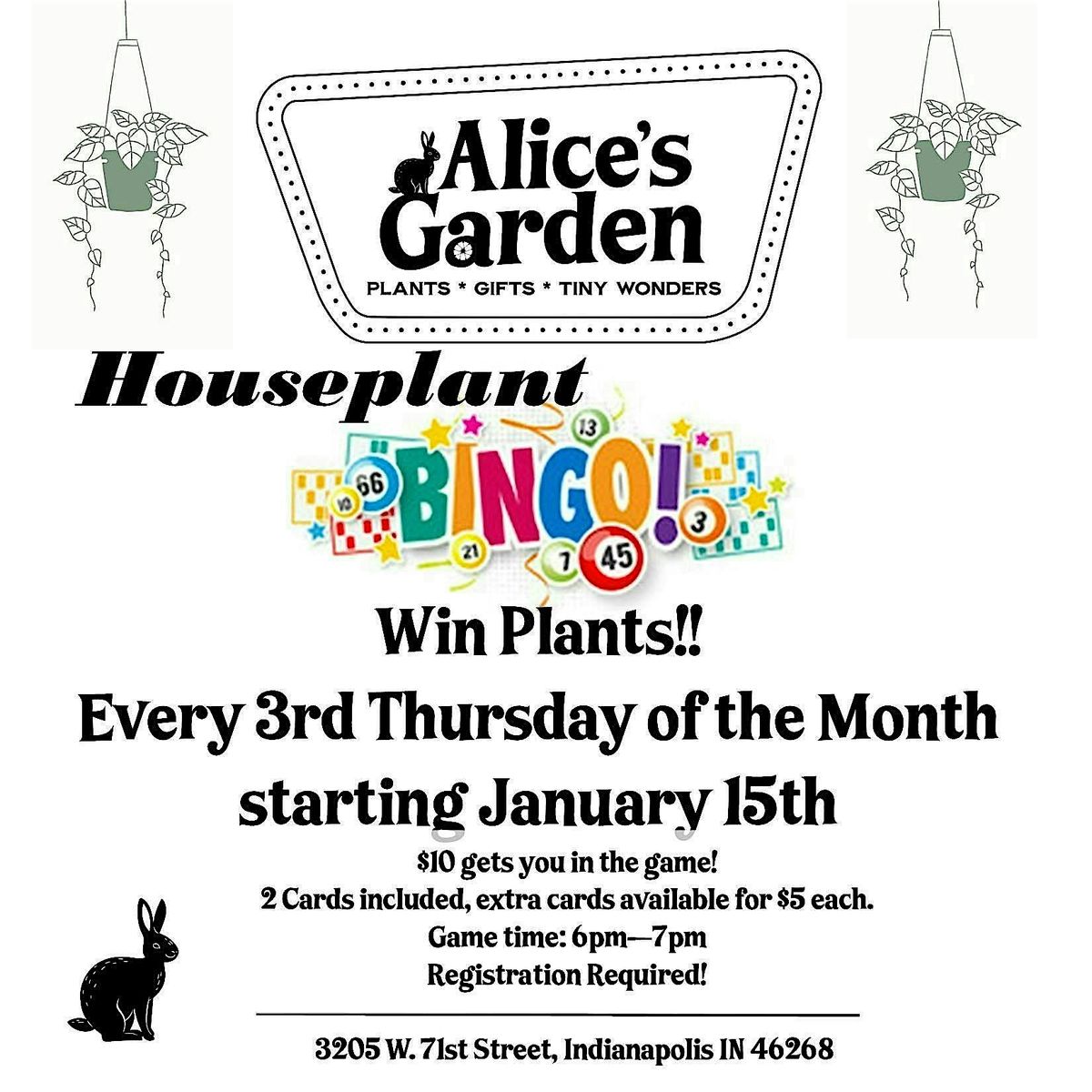 Get ready to have a blast with fellow plant lovers at our in-person Houseplant Bingo event! Whether you're a seasoned green thumb or just starting out, this fun and casual gathering is the perfect way to connect, play, and maybe even snag some awesome houseplant prizes. Bring your good vibes and your love for leafy friends—it's gonna be a great time!