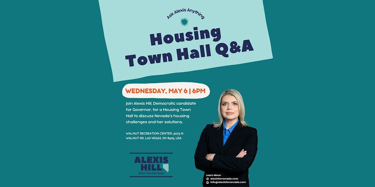 Join Alexis Hill, Democratic candidate for Governor, for a Housing Town Hall to discuss Nevada’s housing challenges and her solutions.