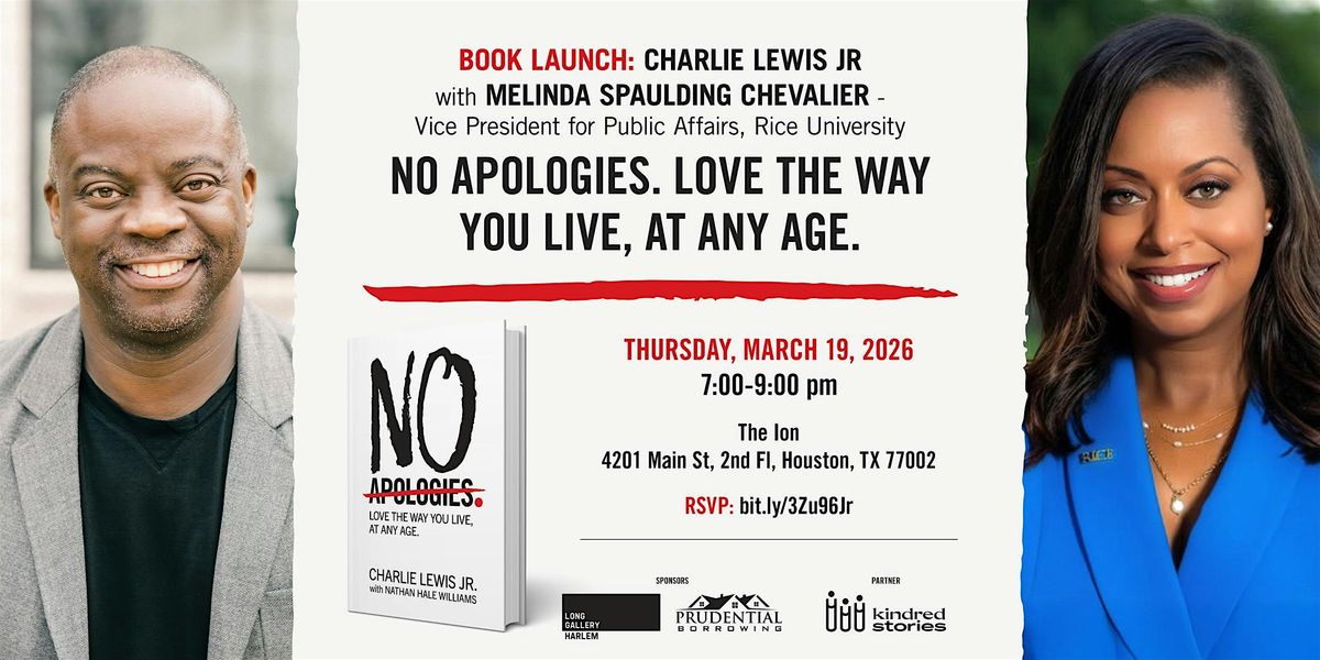 Experience an uplifting conversation with award-winning real estate expert and lifestyle guide Charlie Lewis Jr., Author of No Apologies. Love the Way You Live, at Any Age, and Melinda Spaulding Chevalier, Vice President for Public Affairs, Rice University. Charlie will share insights from his powerful book about living boldly, with intention and joy at every stage of life. Hear his personal journey, learn practical strategies for embracing purpose and fulfillment, and get your copy of No Apologies signed. This event is for anyone ready to live more authentically and unapologetically.