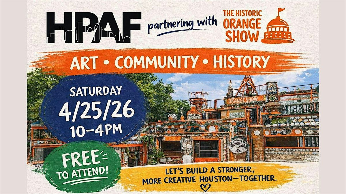 The Houston Poetry & Arts Festival (HPAF) is proud to announce that our 2026 festival will take place at The Orange Show on April 25, 2026.