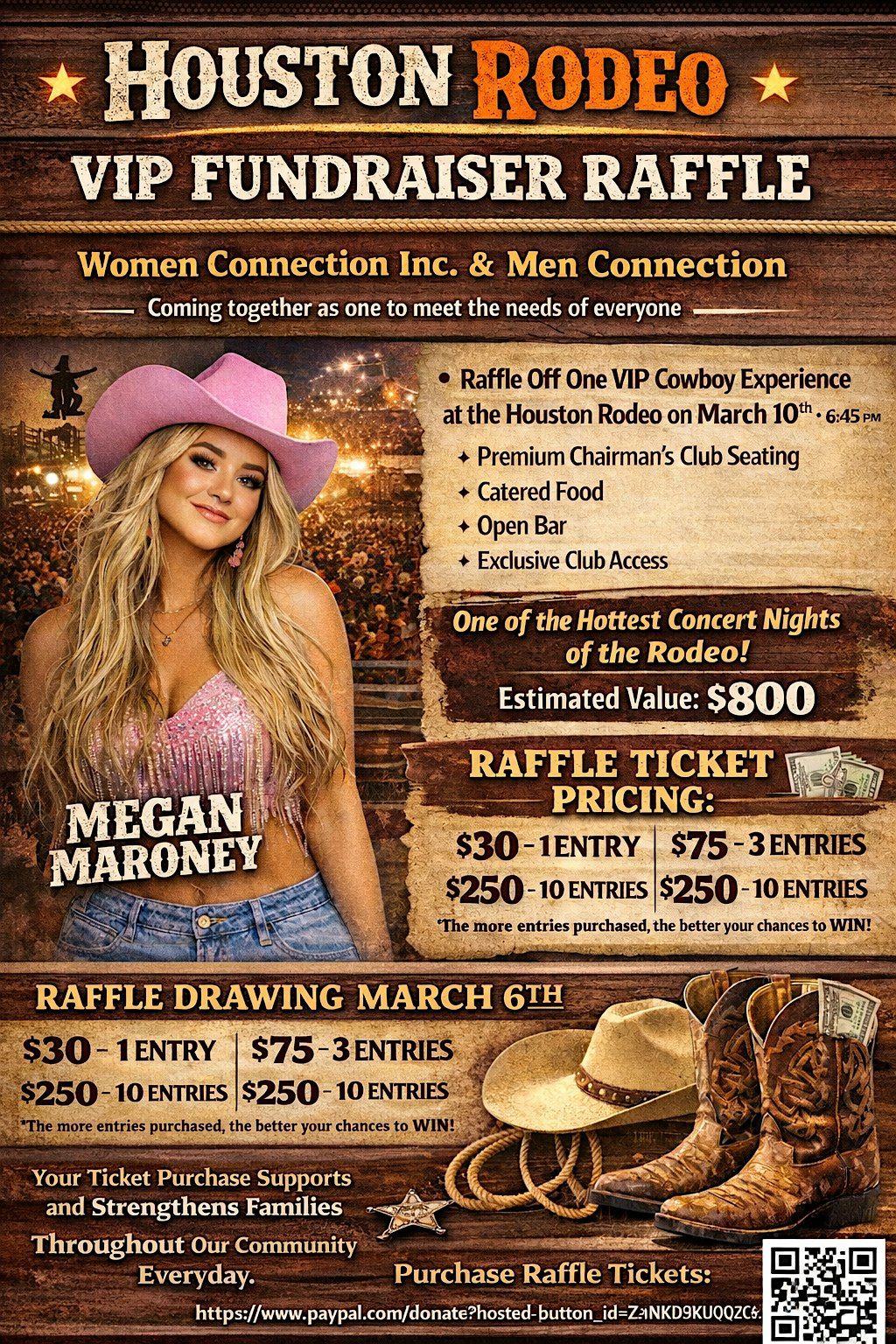Info: Join Women Connection Inc. and the Men Connection Program for an exciting Houston Rodeo Fundraiser Raffle — where community, impact, and opportunity come together.