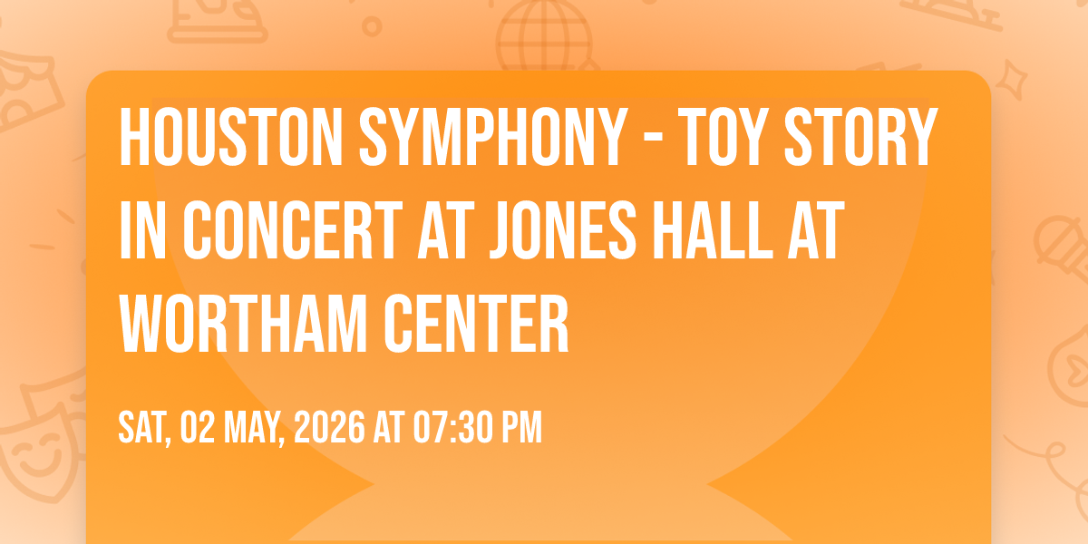 β¨ Enter a world of endless possibilities at Houston Symphony - Toy Story in Concert at Jones Hall at Wortham Center, where every moment tells a story! ποΈ The stunning Jones Hall at Wortham Center in vibrant Houston, TX transforms into a realm of wonder on May 2nd, 2026 at 07:30 PM. π They have crafted an experience that goes beyond the ordinary, combining elements of surprise, delight, and pure entertainment. Every detail has been thoughtfully considered to ensure your journey with us is nothing short of extraordinary. π― Join fellow adventure seekers and memory makers in this celebration of imagination and innovation. π Reserve your spot today and be part of something truly special!