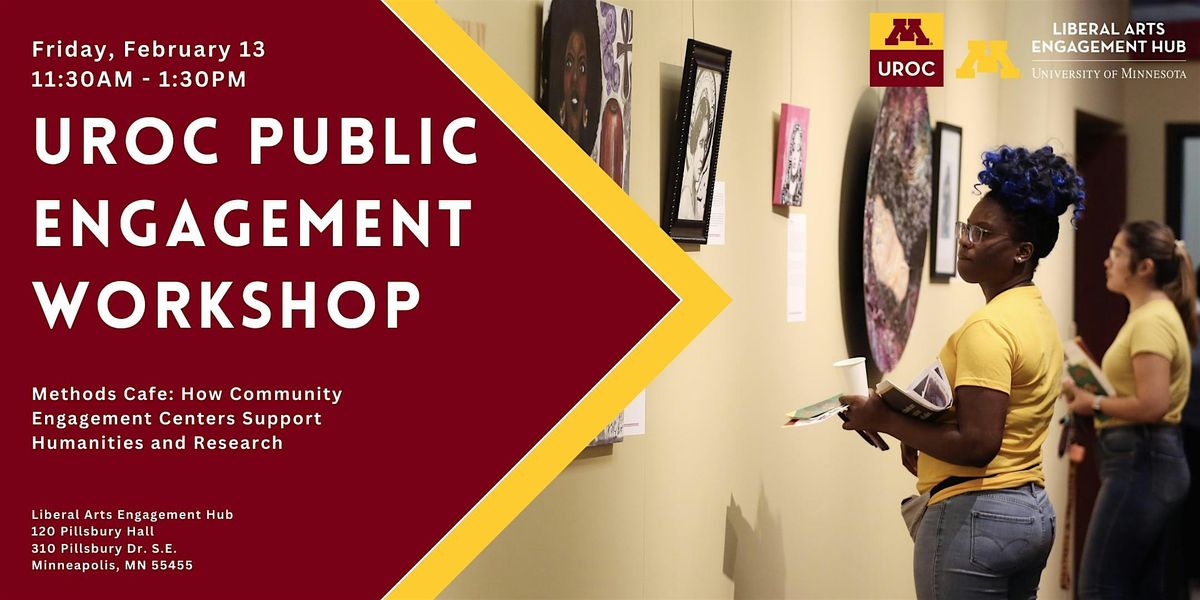 Community engagement centers and their roles at research intensive universities are receiving increasing attention. What are the different ways that such centers can support academic researchers and teachers in their work? In this workshop, participants will learn how UROC can serve to help build trusted relationships for academic research and creative works in the humanities. First, participants will learn how the impact and dissemination of two participatory frameworks (group concept mapping and photovoice) were enhanced by working with community partners in trusted spaces. Participants will then engage with UROC affiliate faculty at the U to learn about their methods and how UROC supported their projects, community relationships, and dissemination strategies. This workshop is open to all, and aimed to educate faculty, staff, and community partners who are interested in academic-university partnerships.