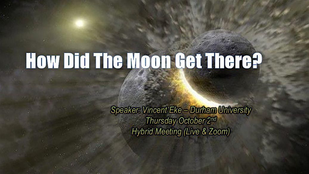 How did the Moon get there?Rocks returned to Earth by the Apollo astronauts over 50 years ago profoundly changed our view of how the Moon formed. This talk will review our current understanding of the Moon's formation, explaining planet formation more generally and how computer simulations are being used to try to infer what happened 4.5 billion years ago.