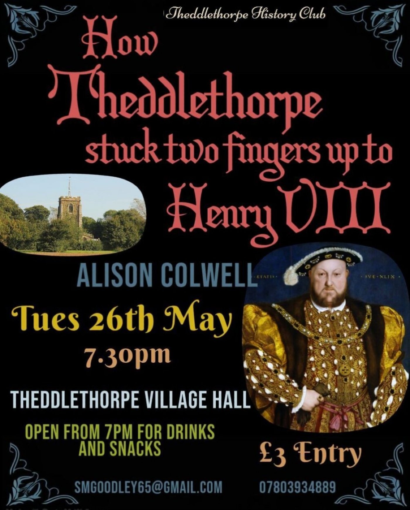Local historian Alison Colwell will tell us How Theddlethorpe stuck two fingers up to Henry VIII.