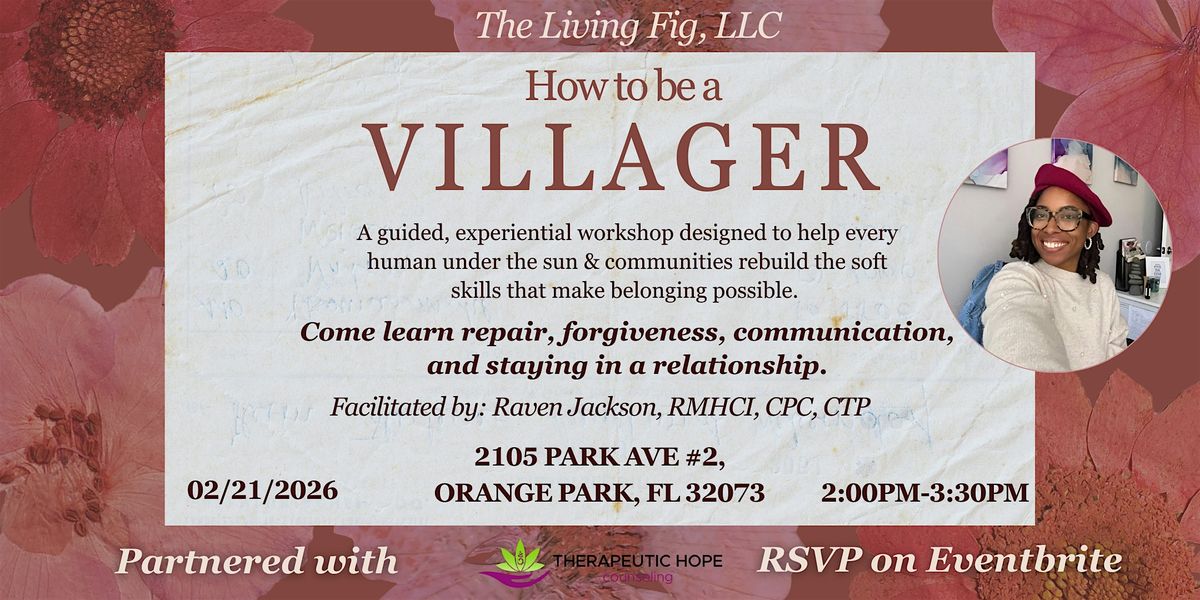 How to Be a Villager is a 90 minute, workshop focused on practical social and relational skills that help people feel more grounded, connected, and purposeful in community.