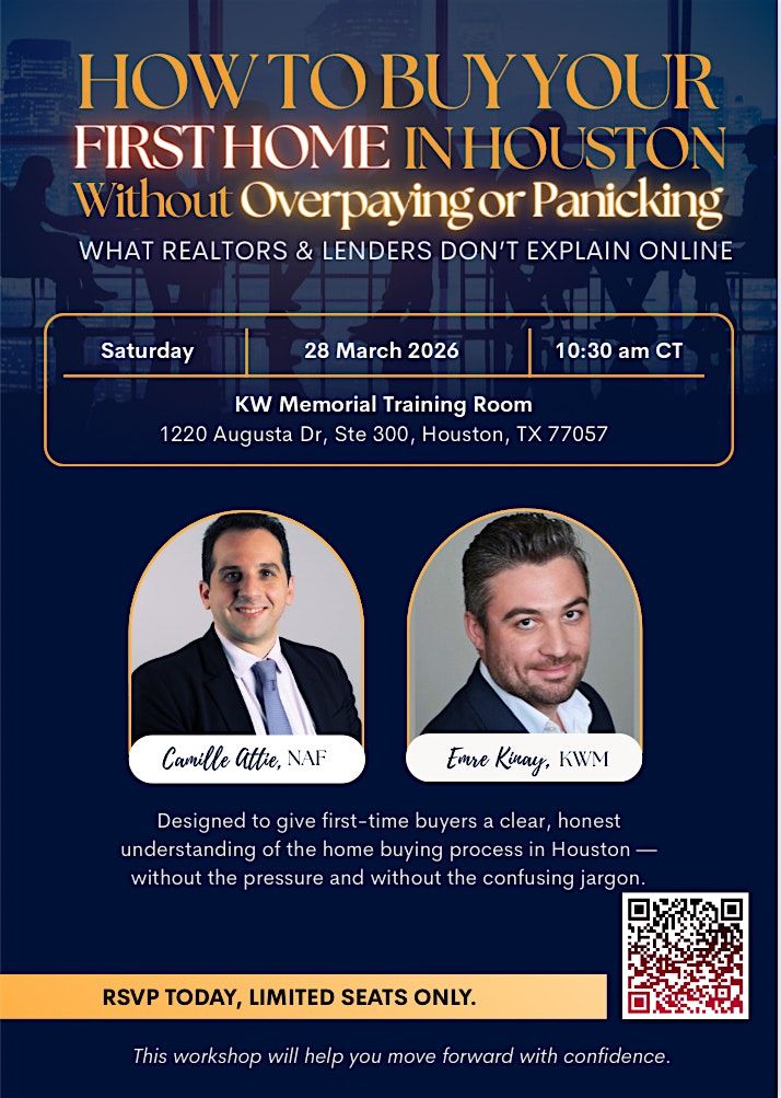 Join us in person for an eye-opening session: HOW TO BUY YOUR FIRST HOME WITHOUT OVERPAYING OR PANICKING? We'll break down the process, share tips on spotting great deals, and help you stay chill throughout. No confusing jargon, just real talk and easy steps to get you moving confidently into your new place!