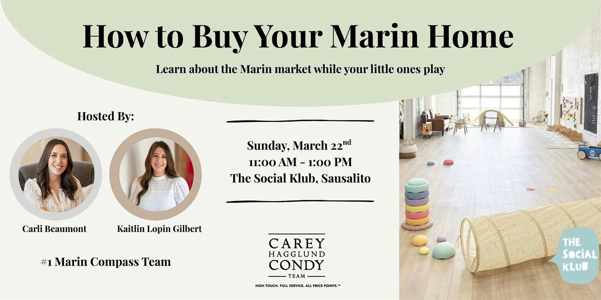 Buying a home in Marin can feel complex, but it doesn’t have to be stressful. Join Carli Beaumont and Kaitlin Lopin Gilbert of the Carey Hagglund Condy Team, the #1 Marin Compass team, for a conversation designed to demystify the home-buying process while your little ones play nearby.