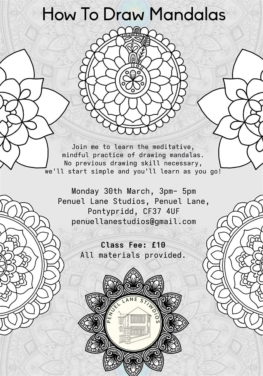 Led by , learn the very relaxing process of drawing mandalas with me at Penuel Lane Studios in Pontypridd, 3pm - 5pm on Monday 30th March. It's £10 per person for a two hour session, all materials provided (but you're very welcome to bring your own fineliners, compass, ruler, and protractor if you have them!)