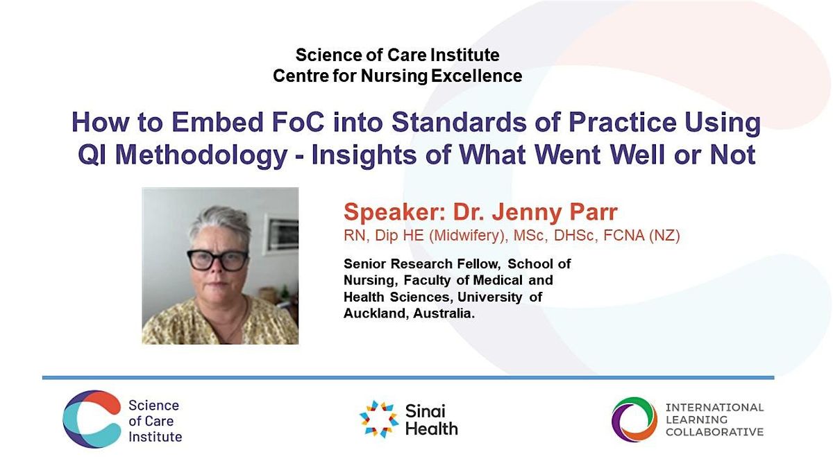 Join this hybrid session featuring Dr Jenny Parr, Senior Research Fellow at the University of Auckland, Australia, explaring the Fundamentals of Care (FoC) Framework and its practical integration into standards of practice using quality improvement (QI) methodology.