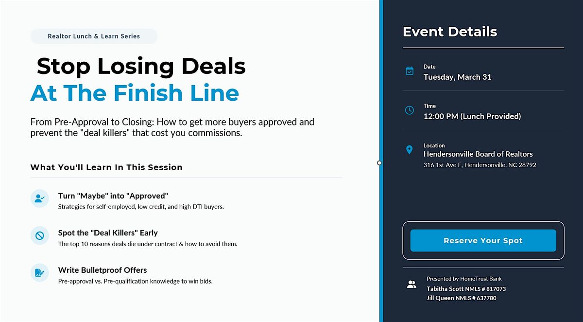 Learn how turn "Maybe" into "Approved", Spot the "Deal Killers" Early and Write Bulletproof Offers.