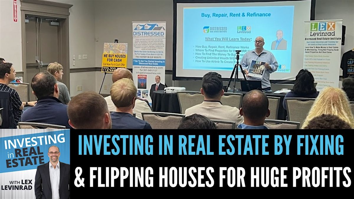 Lex Levinrad will be teaching you how to buy, fix and flip houses for huge profits at this meeting. Our students are fixing and flipping houses and in some cases making their annual salary or more on ONE fix and flip!