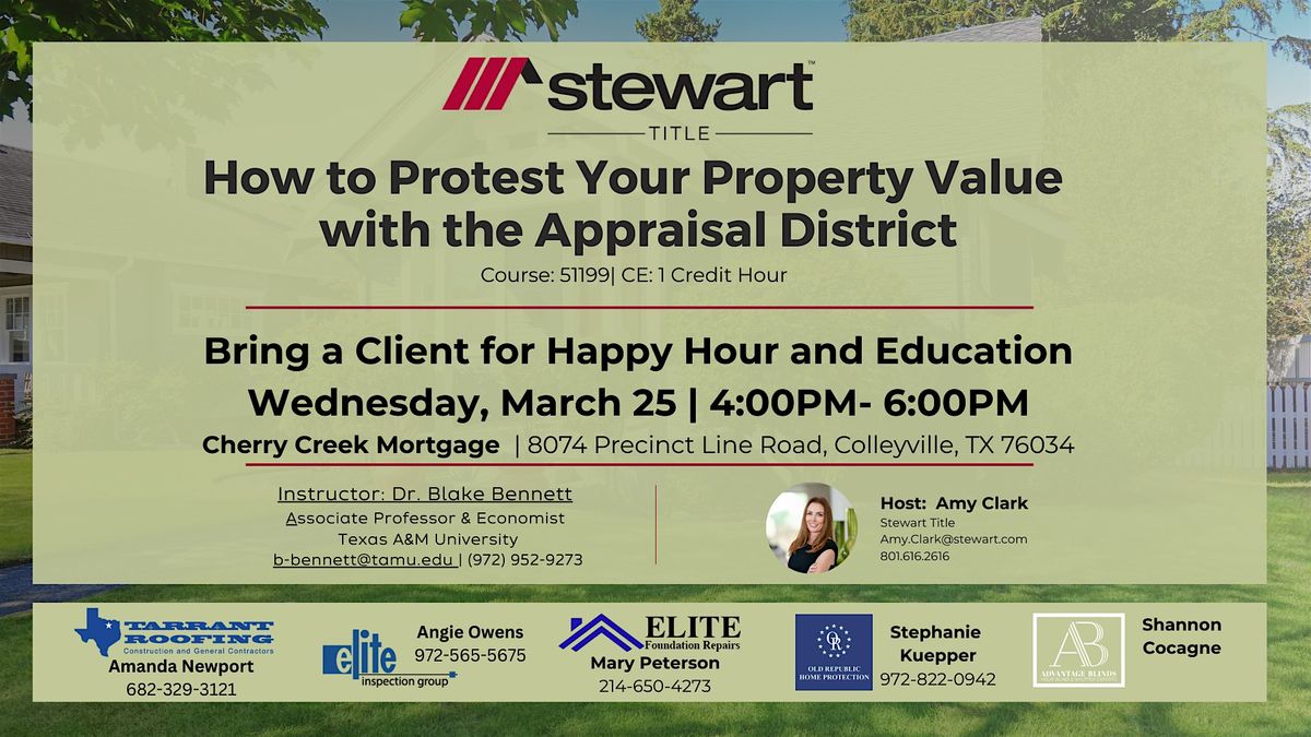 Learn how to stand up for your property value at the Appraisal District - don't let them undervalue your home sweet home! Bring a client!!