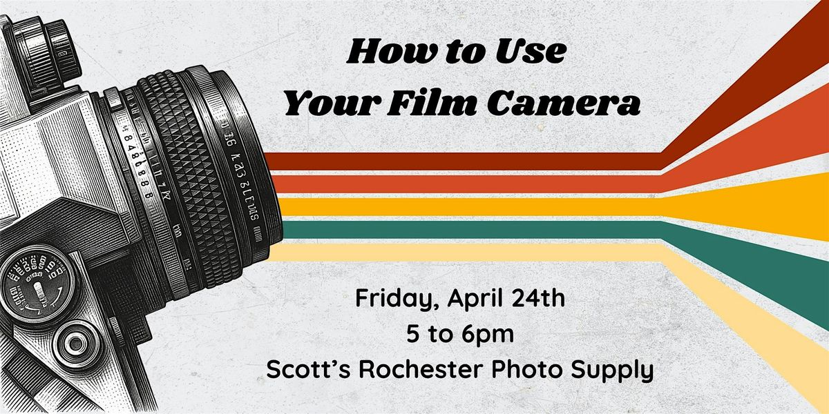Grab your film camera and join us at Scott's Photo for a hands-on session where you'll learn the basics of using your film camera. Whether you're a complete beginner or returning to film photography after a long hiatus, this is an opportunity to ask our team questions, troubleshoot any issues you're experiencing and get set up for a successful roll of film.