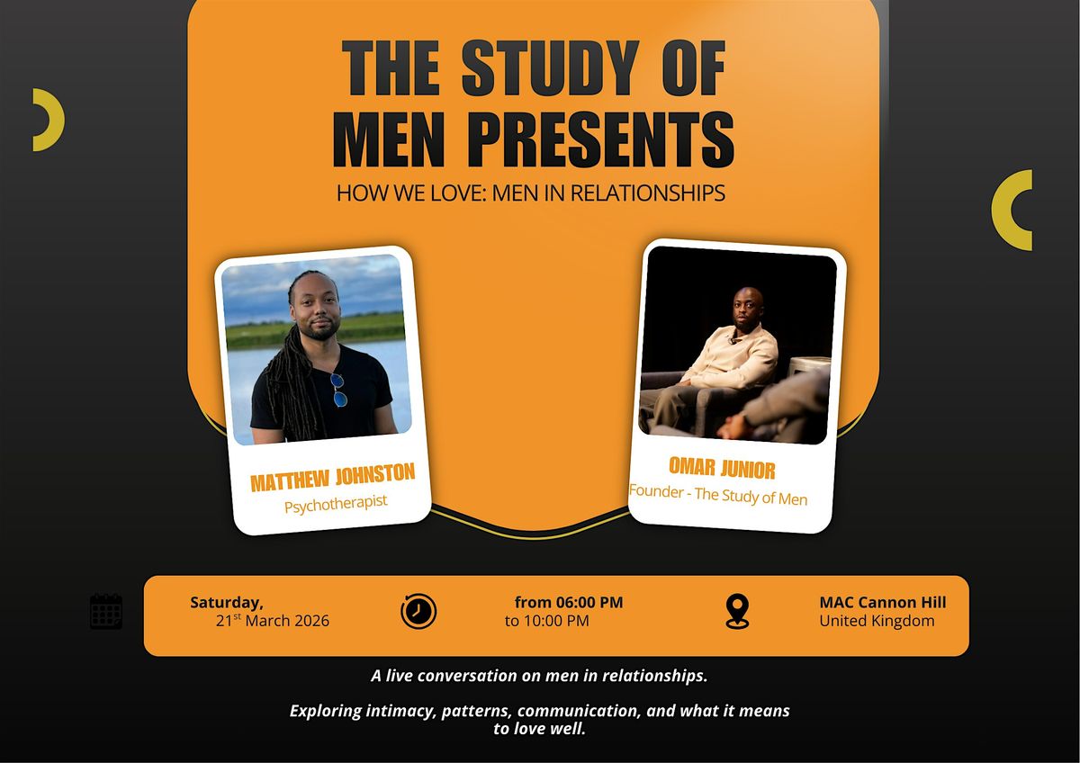 The evening will be facilitated by Omar Junior, Founder of The Study of Men, alongside Matthew Johnston, a qualified Psychotherapist.