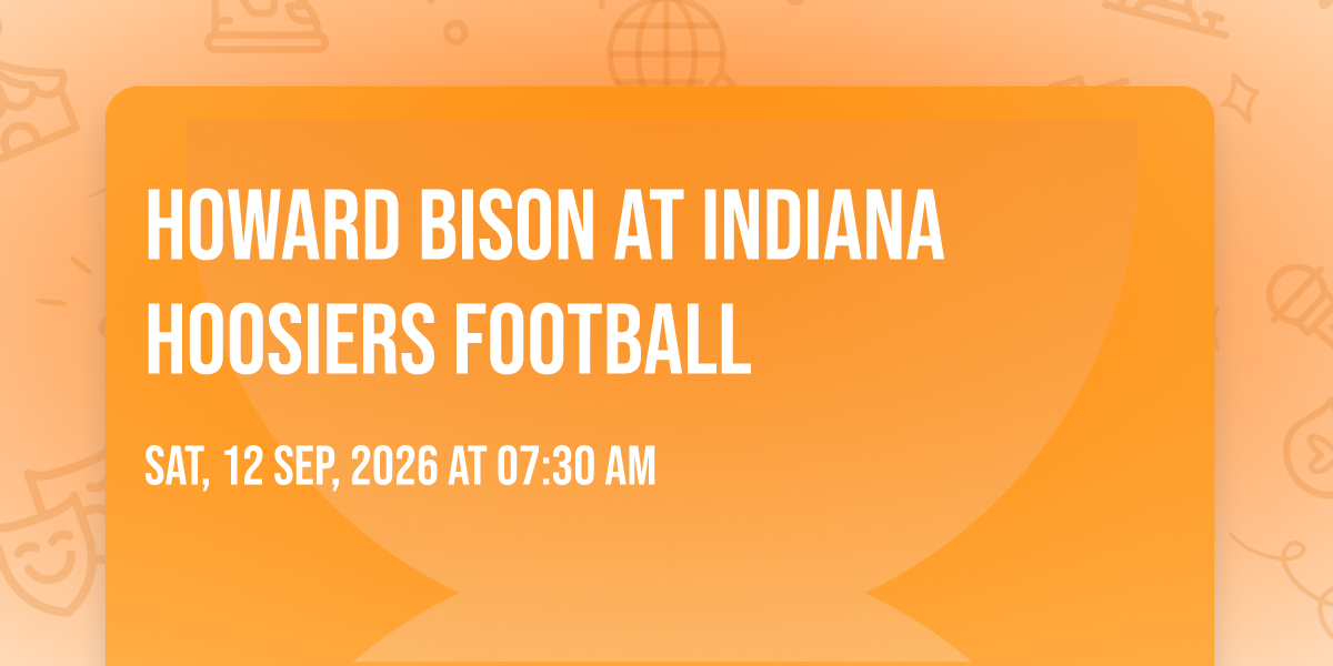 📍 Location: 39.1809, -86.5256🎉 Welcome to Howard Bison at Indiana Hoosiers Football, where the impossible becomes possible and dreams take flight! 🏛️ Join us at Merchants Bank Field at Memorial Stadium in the heart of Bloomington, IN for an event that will redefine your expectations. 📅 On September 12th, 2026 at 07:30 AM, witness the transformation of space and time into something truly magical. ✨ It's a curated experience combining the best of innovation, entertainment, and community spirit, creating moments that will be remembered for years to come. Whether you're a first-time visitor or a seasoned enthusiast, prepare to be amazed. 🎊 Book now to ensure your place in this unforgettable experience!