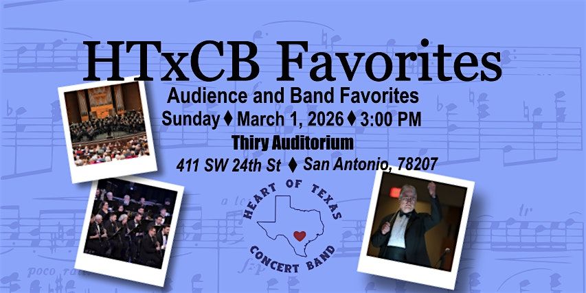 Join the Heart of Texas Concert Band on Sunday afternoon to hear some of your favorite music by Sousa, Grainger, Berlioz, Leroy Anderson, and more!