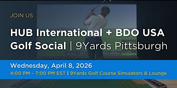 HUB International and BDO USA invite you to join us for a relaxed evening of golf, networking, and conversation at 9Yards Golf in Pittsburgh.