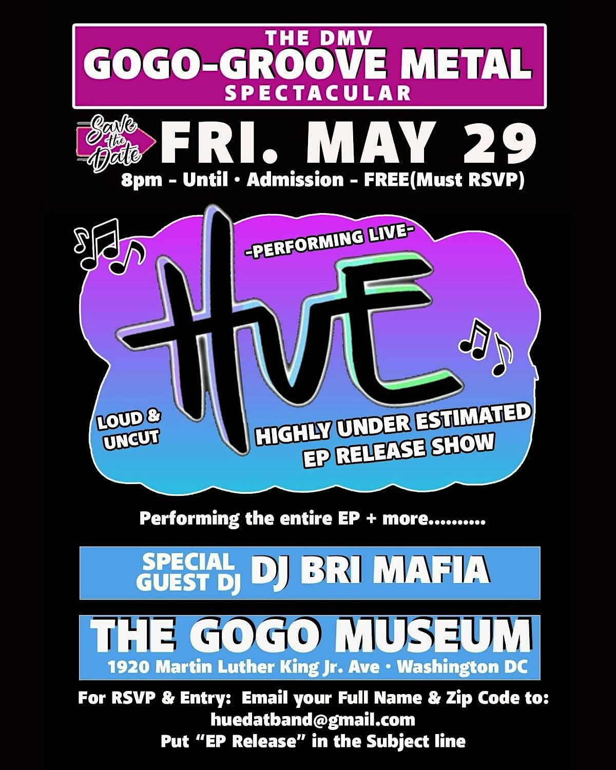 Join us on Friday, May 29th for HUE’s EP Release Show! The band will perform their new EP and more alongside special guest, DJ Bri Mafia. Don’t miss this go-go groove metal spectacular at The Go-Go Museum & Café.